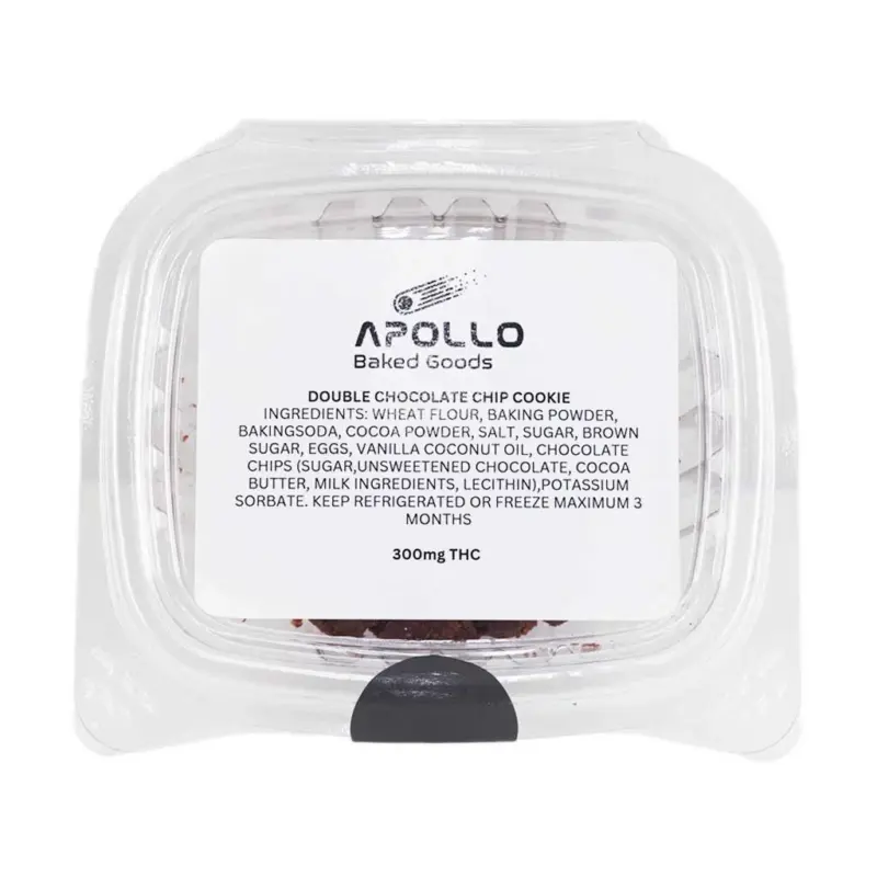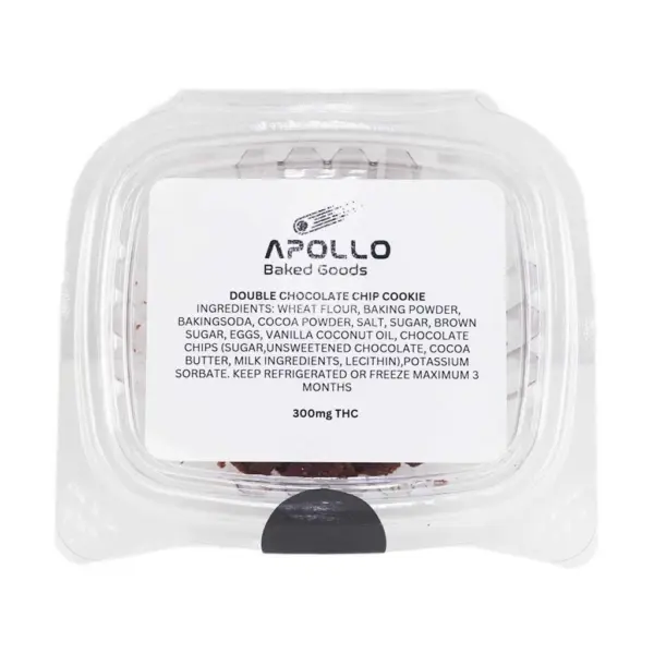 Ingredients: wheat flour, baking powder, baking soda, cocoa powder, salt, sugar, brown sugar, eggs, vanilla coconut oil, chocolate chips, potassium sorbate.